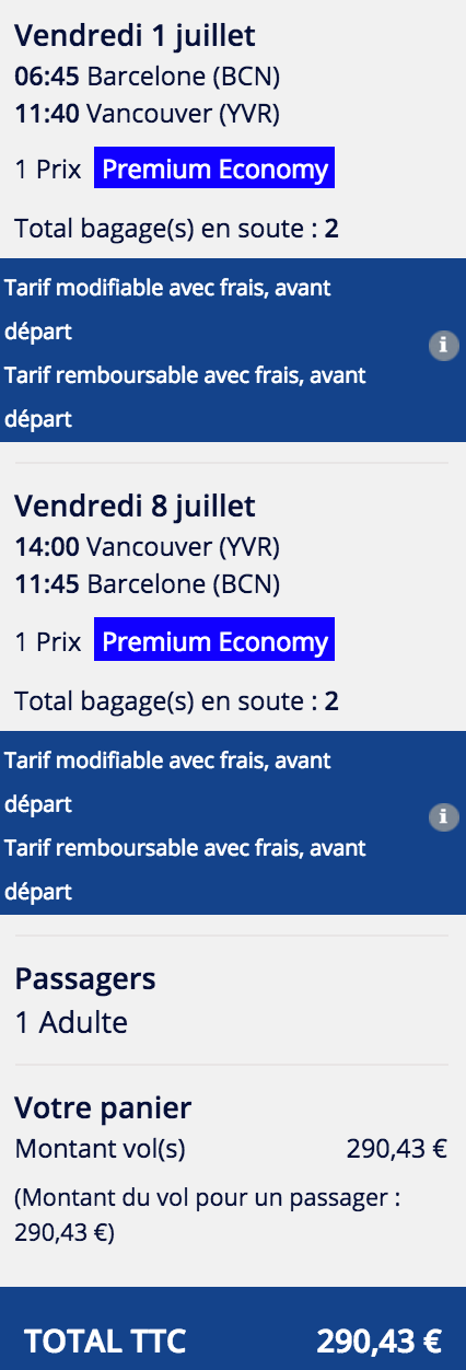 May 3nd: Air France Crazy ‘sale’  Barcelona to Vancouver and other Canadian cities in premium economy class is on from 290€ roundtrip!