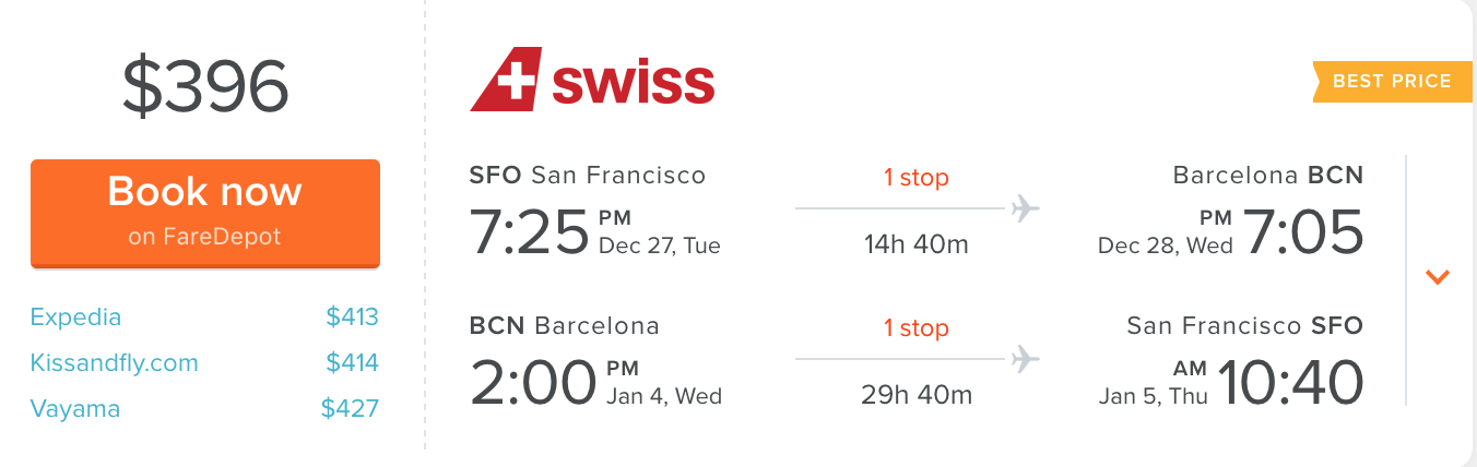 United New Year’s Eve Crazy Sale   Nov 22d: United and Star Alliance sale to Europe from  396$ round-trip ! Sample dates with handy links: SFO <> Barcelona ! Dec 27- Jan 4, 396$ For more cities and dates: create a trip request.   Check out  best...